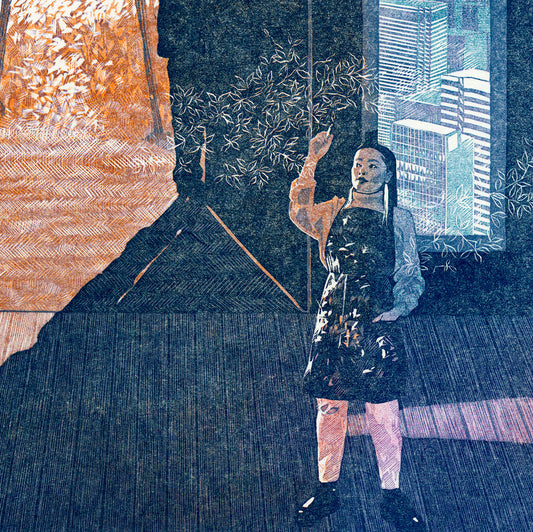 A creation rooted in conversation, rendered in linocut printmaking, and designed to inspire comfort-seeking.
