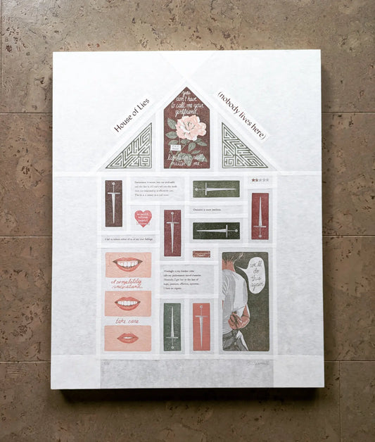 Inspired by translucent quilting, this collage-piece is based on my own deeply earnest approach to life and love, wherein if I lie... we're doomed. This is a super limited edition of 10 and a clear link between the Comfort Project and Romance Series.
